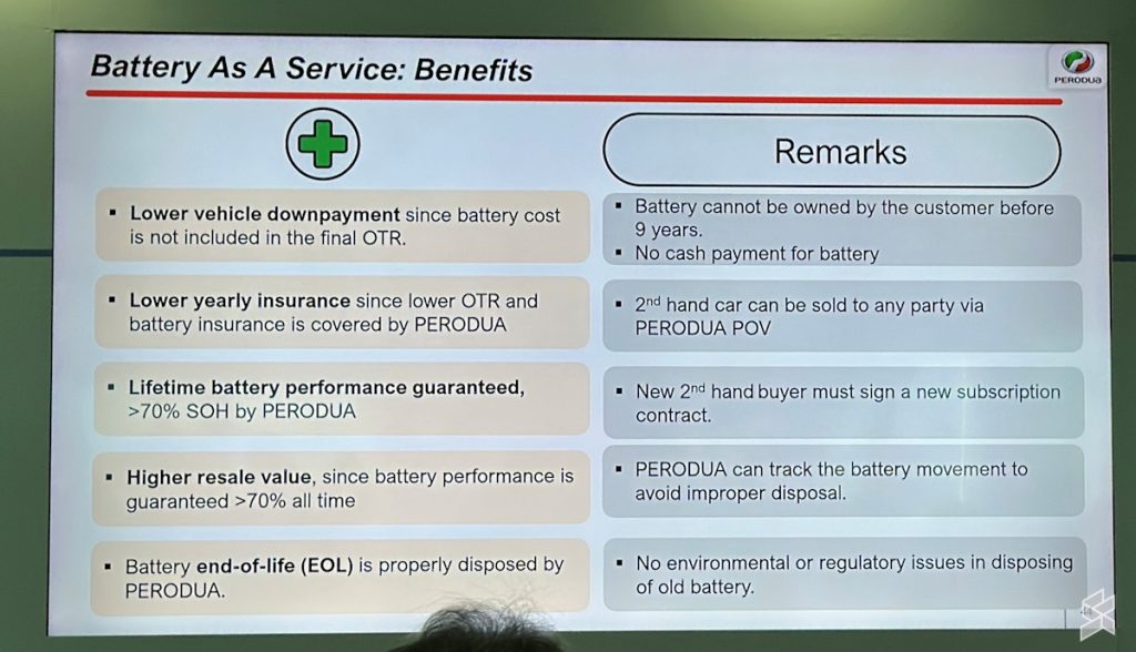 - If the battery’s SoH falls BELOW 70%, you can opt for a new battery from Perodua. However, you have to sign up for a new 9-year contract.