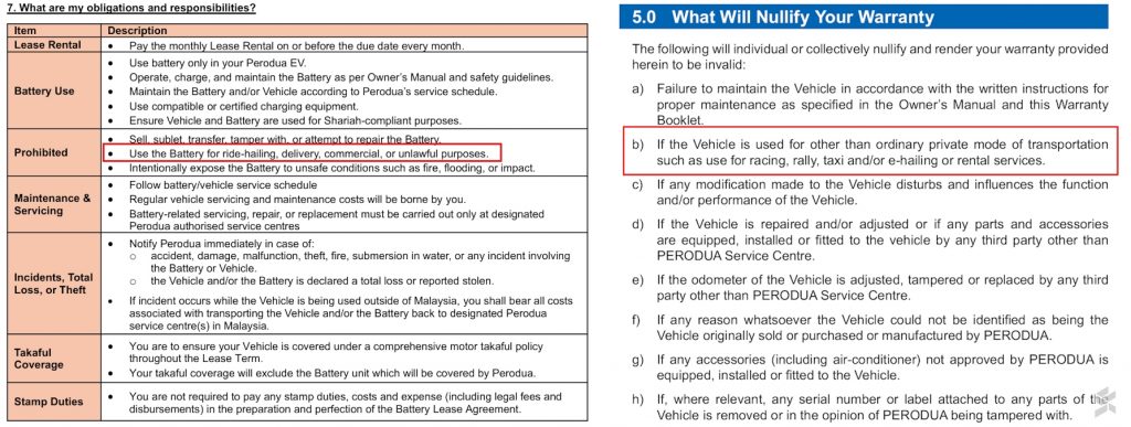 This was clearly stated in the car’s warranty booklet. Aside from e-hailing, you also cannot use it for delivery (such as Lalamove, Grab Food) and commercial services.